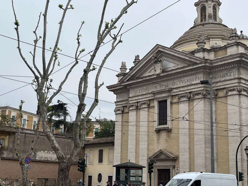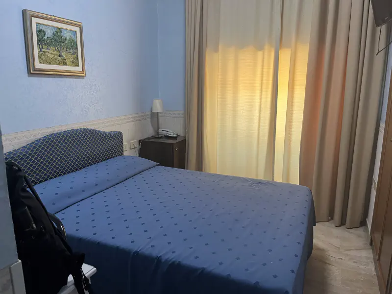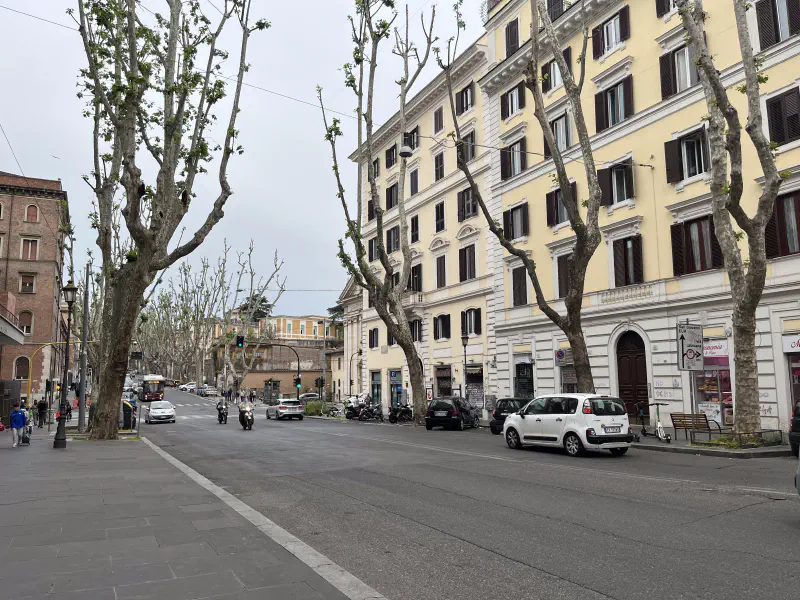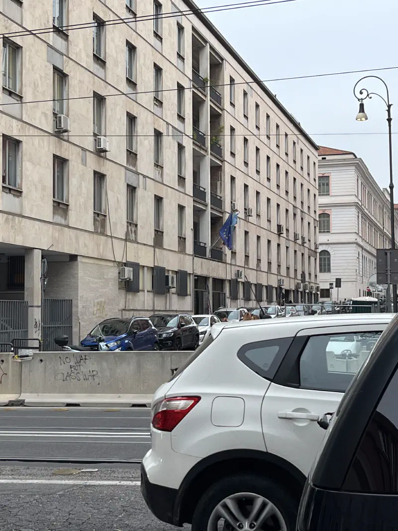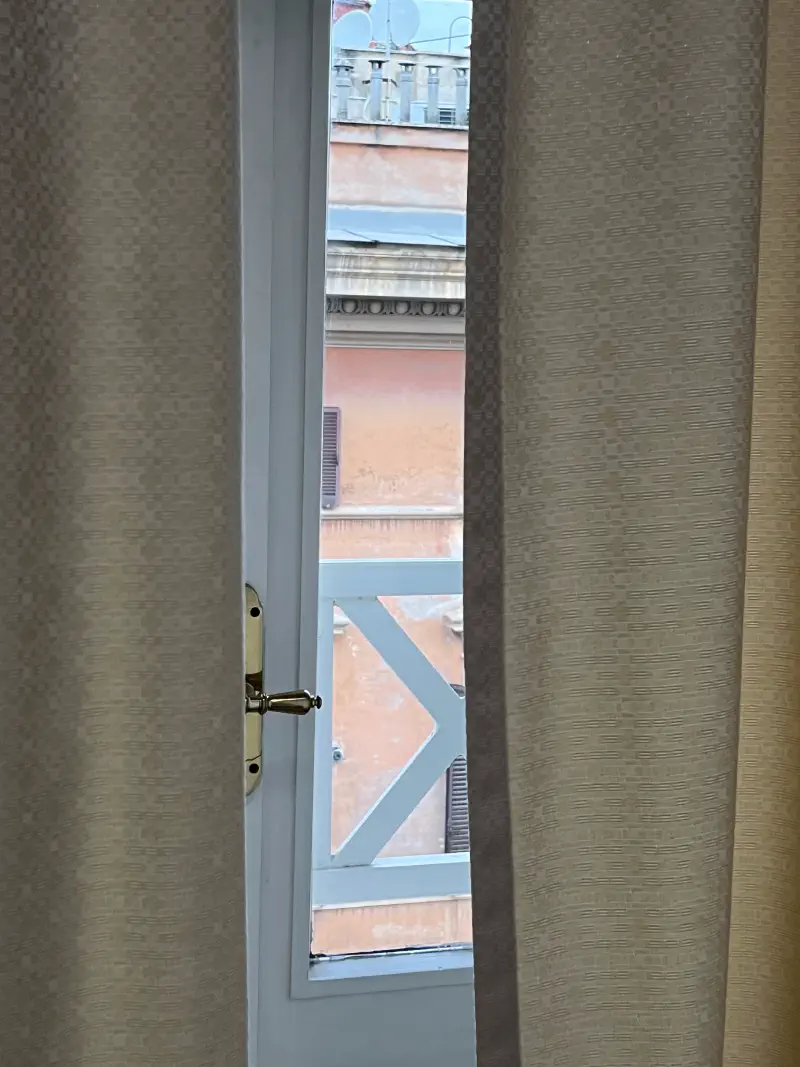 ここでbossとお別れして各々のホテルへ。 テルミニ駅の出口は辺り一帯がオープンな喫煙所になっており、煙臭かった。 海外だと室内の喫煙は厳禁で、その代わり外での喫煙がかなりゆるいらしい。 煙の中を進んでローマの町中でキャリーを引きずっていく。 ホテルまではなんやかんや遠く、15分くらいかかった。 GoogleMapsによるとホテルについたらしいが、どの建物も総じて古いのでどれがどれなのかよく分からなかった。 しかもすぐ近くには酒とタバコを売っている治安の悪そうな店。 後に知ったのだが、タバッキという名前のイタリア版コンビニみたいな存在らしい。 タバッキを避けて通り、なんとかそれっぽいところに到着。