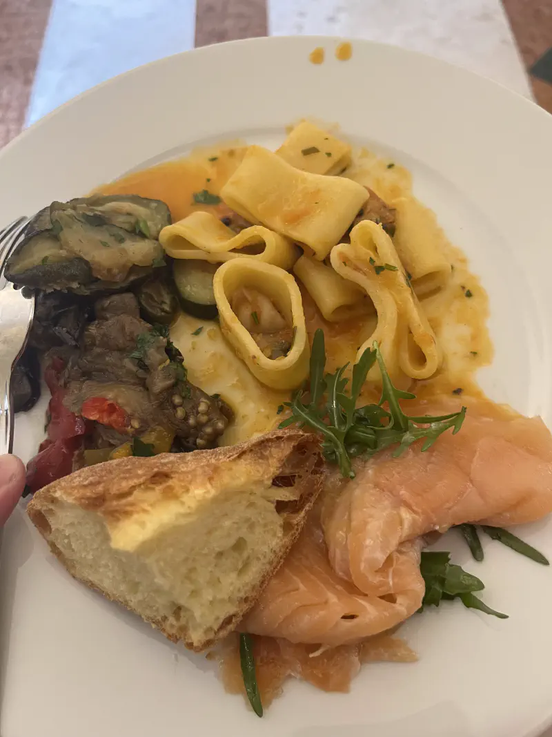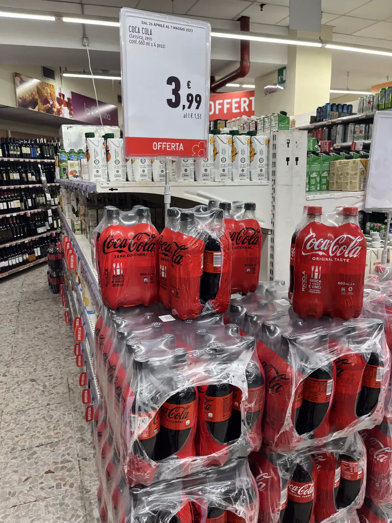 とりあえず水とちょっとしたスナックとコーラだけをカゴにぶん投げる。 レジは、ドラマとかでよく見るベルトコンベアーみたいなやつに商品と仕切りを置くやつだった。 見様見真似で自分の商品と仕切りを置く。 自分の番になり、値段が表示される。 ここで、このスーパーってカード使えるのかなと思い、“Can I use a card?“と尋ねる。 前情報によると、イタリアは若い人は英語が、ご年配の人はフランス語が通じるらしい。 レジをしてくれていた人は若く見えたため英語で聞いてみた。 結果、こいつ何いってんねんみたいな顔で見られた。 泣きながらキャッシュで払った。