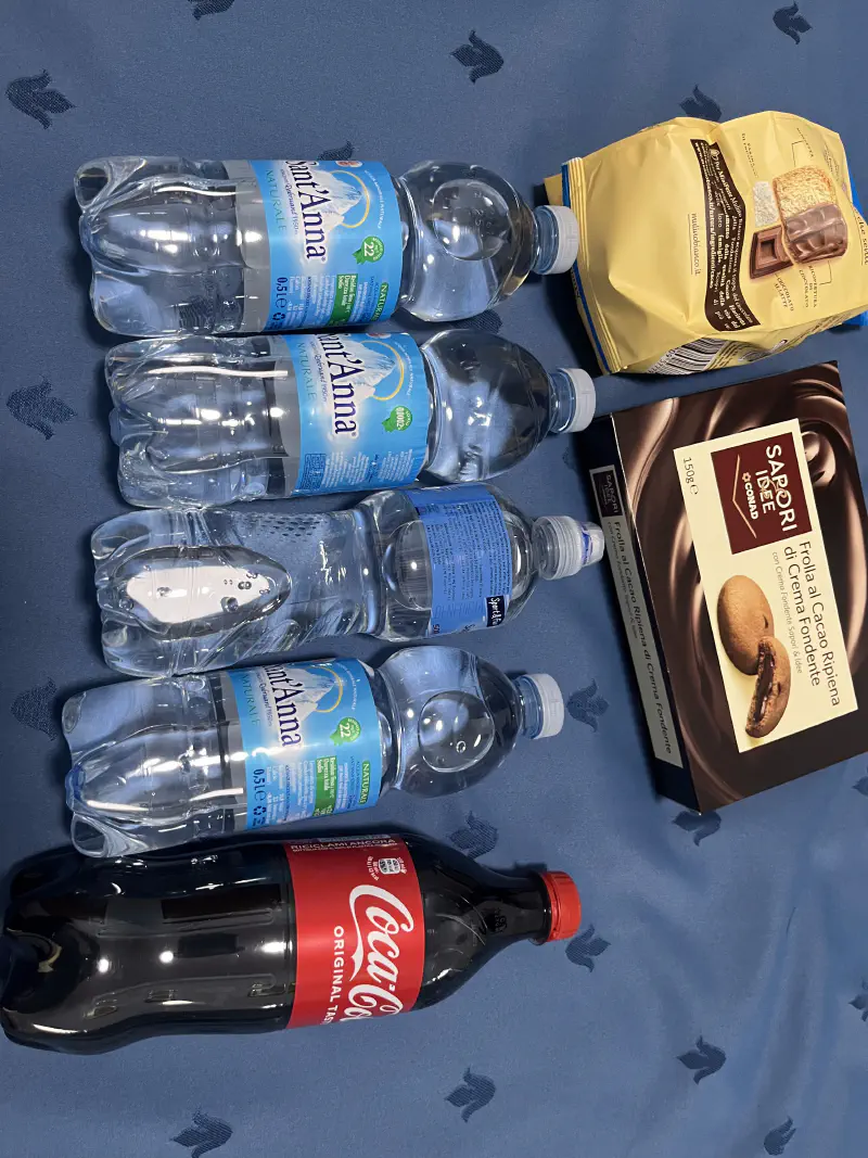 2つ目に大事なもの、水。 これに関しては、飛行機のルール上日本から持ってくることはできない。 しかもイタリアの水は硬水で日本人が飲むと腹を壊しやすいという。 つまり、水だけは現地のスーパーか何かでミネラルウォーターを調達しなくてはならない。 これはかなり困難なミッションだ。 サバイバルが、始まった。